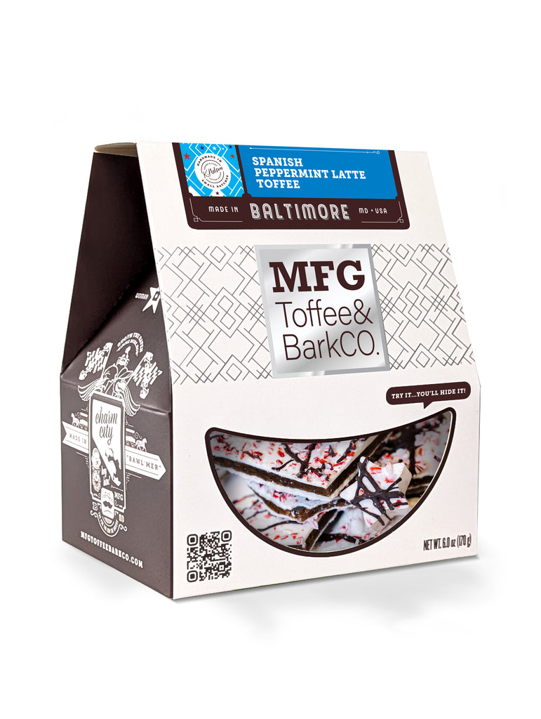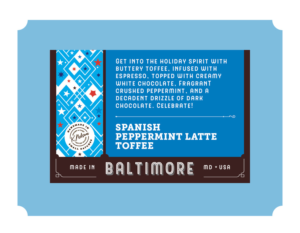 Get into the holiday spirit with buttery toffee, infused with espresso, topped with creamy white chocolate, fragrant crushed peppermint, and a decadent drizzle of dark chocolate. Celebrate!
